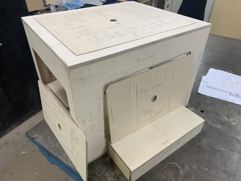 The panels are all cut with a CNC router and hand finished which blends machining and hand finishing. As new tech is invented, we as designers are able to push the boundaries on what is achievable and 3D printing, laser cutting and digital machining provide solutions to the elaborative ideas we conger up and I want that to be reflected in Stage Case. I used computer 3d modelling (Fusion 360) to build exactly what I wanted including rebate depths and textures / decals so I could see exactly how it was going to work.