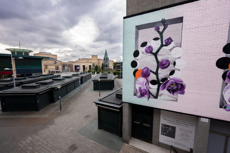 The effect of the current climate crisis is far and wide-reaching, whilst the information available is vast. People are undoubtedly aware of the problem, but not entirely sure what they can do to make a change. It is this very reason why projects such as Our Towns: Climate are vital; they take what can be viewed as an overwhelming, global issue and explore the subject through a local lens. Conversations start because, all of a sudden, the issue is brought closer to home, but also because, and let’s be frank, it’s very difficult to ignore a huge, bright, beautifully executed mural in the heart of the town centre.